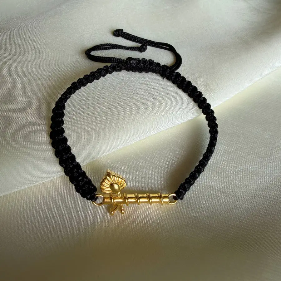 Celebrate your love for Krishna with this beautifully symbolic Thakur Ji Bansuri bracelet finished in luxurious 22K gold plating. Inspired by the enchanting bansuri (flute) played by Krishna — a symbol of divine love, joy, and cosmic harmony — this bracelet is designed to uplift your spirit and complement your everyday style with sacred elegance.