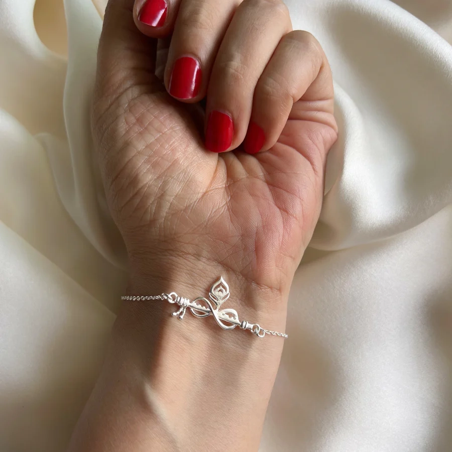 Forever Thakurji Love 92.5 Silver Bracelet is a symbol of eternal devotion, divine blessings, and unconditional love—guided by the ever-charming spirit of Lord Krishna.