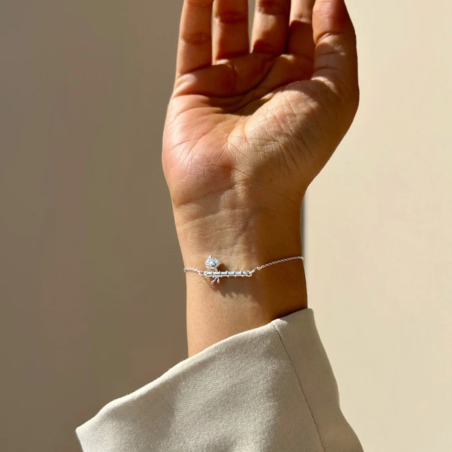 Celebrate the eternal charm of Krishna with this beautifully crafted Thakur Ji Bansuri 92.5 Silver Bracelet. The delicate flute motif symbolizes divine love, harmony, and the soulful music that represents Krishna’s playful yet profound presence in our lives.